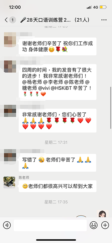 口语训练营已开放三期,目前已有超过500位汉语学习者加入了口语训练营,在老师的辅导下,同学们的汉语口语取得了很大的进步,不但掌握了实用的发音技巧,还收获了很多志同道合的朋友。